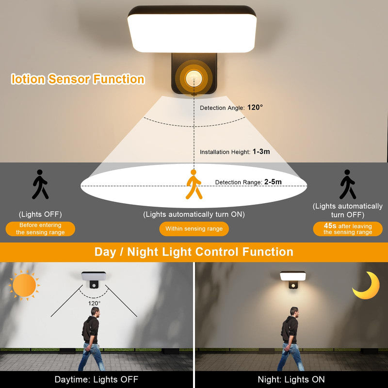 (Weitwinklige Lighting)The LED-Outdoor beam features over a Weitwinkeldesign with a Lighting angle of 160degree, which a large Sector lit be can. The Outdoor wall light achieved a Brightness of 1620LM / 16W (150W Equivalents) and can a Plot of 15 Square meters light.