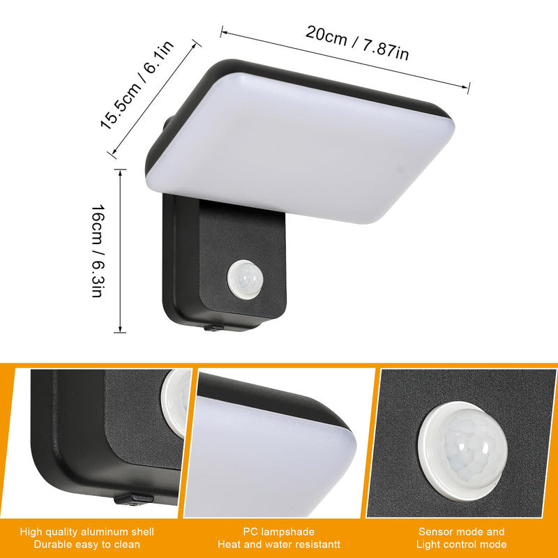 (Specification)Product large: 20 x 16 x 15,5 cm; Color temperature: 3000K; Power: 16W; Brightness: 1620LM; Compatible Voltage: 210V-230V; Motion detection: Ja; Easy to install, Package arrives with Installation statement and Installation material.