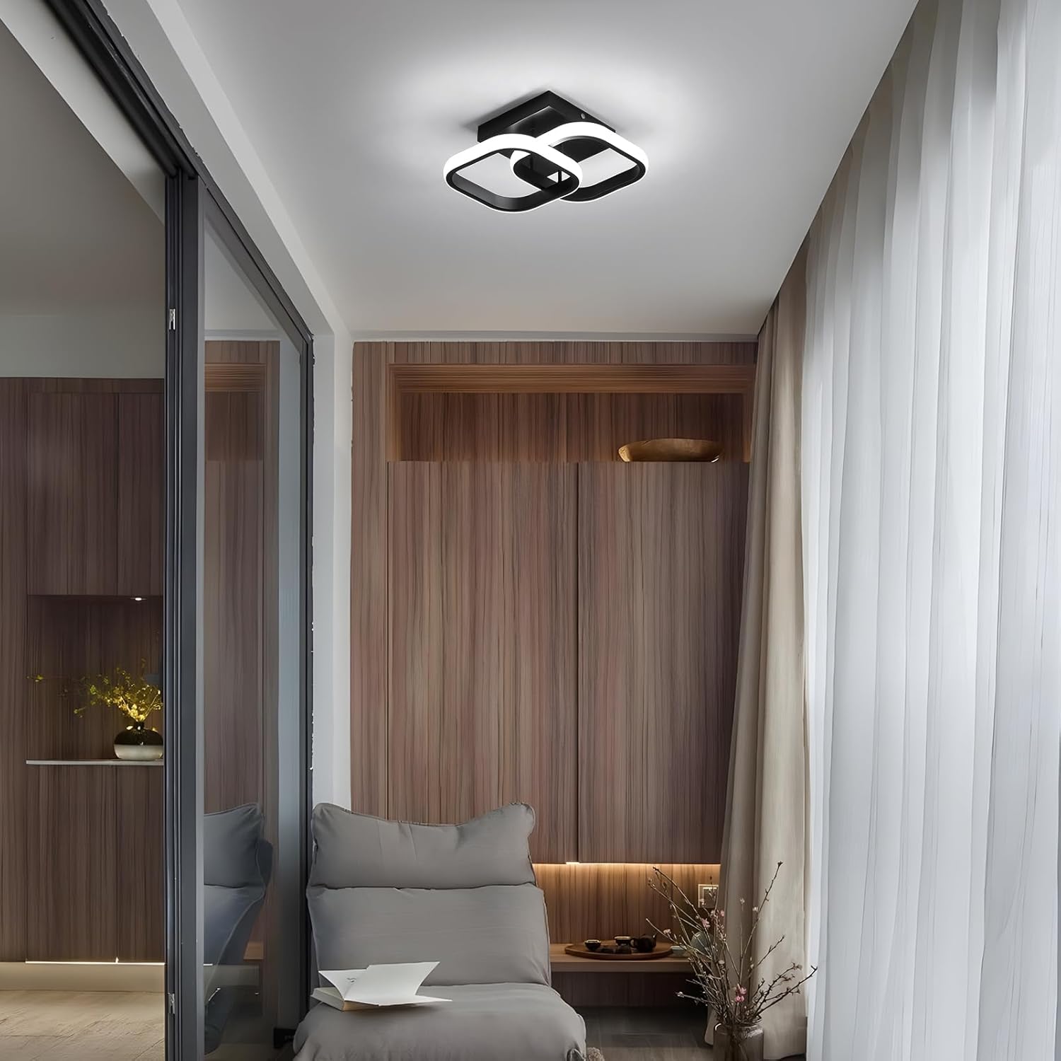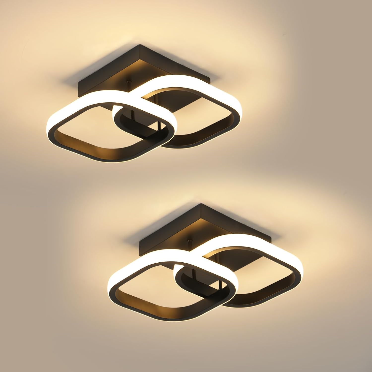 Comely 2 Packung LED Deckenleuchten Modern, 24W 2700LM Kleine quadratische LED Deckenleuchte, Innenbeleuchtung für 1r Schlafzimmer, Wohnzimmer, Gang, 3000k Warmes Licht, Negro, 24cm