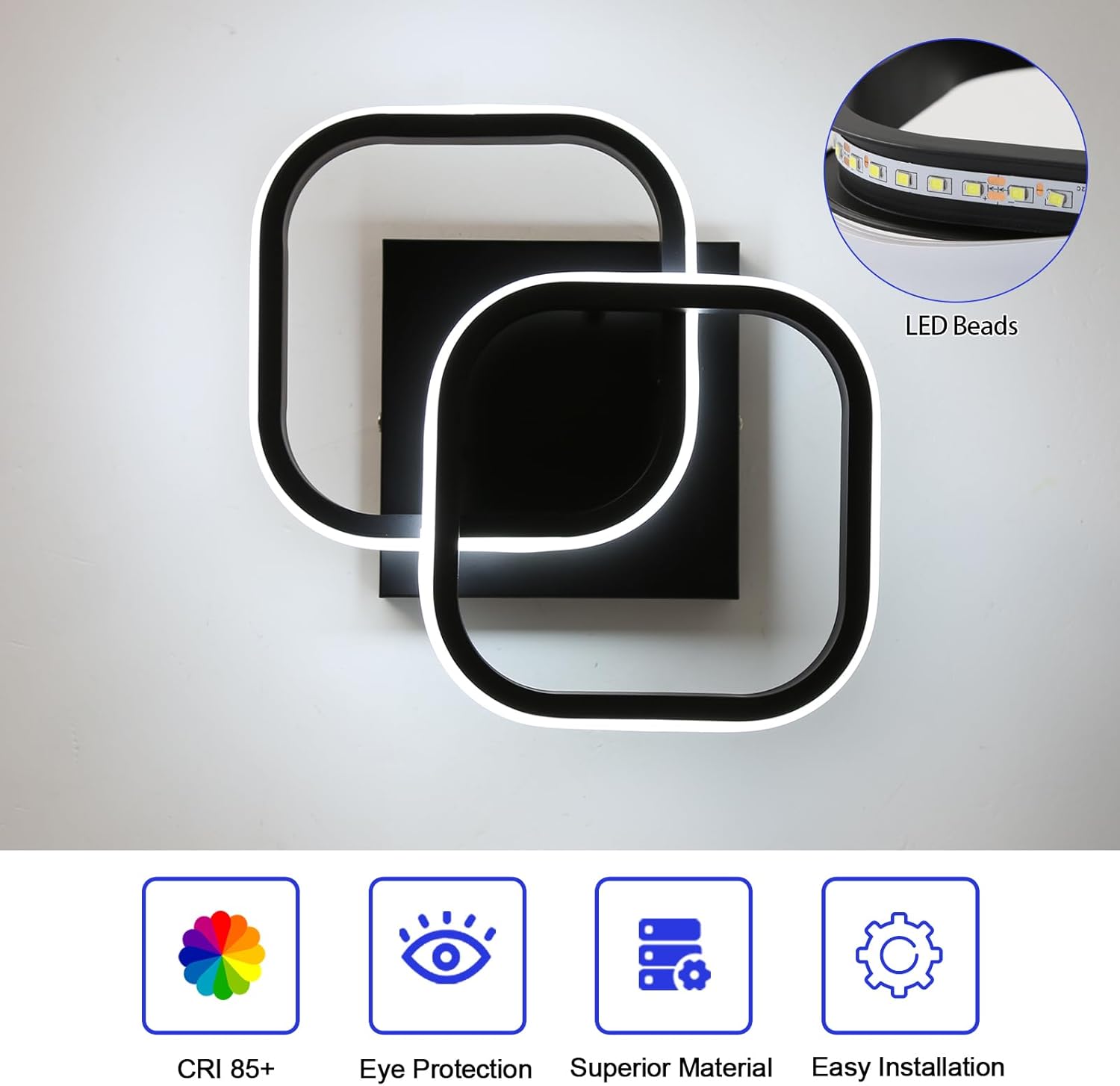 ??Kreatives Design?? LED-Deckenleuchten für den Innenraum im zeitgenössischen Stil, modische Schlichtheit, kreativ mit 2 quadratischen Formen. Die Deckenleuchte verfügt über komplettes Zubehör, wird mit Installationsanweisungen geliefert und ist einfach zu installieren