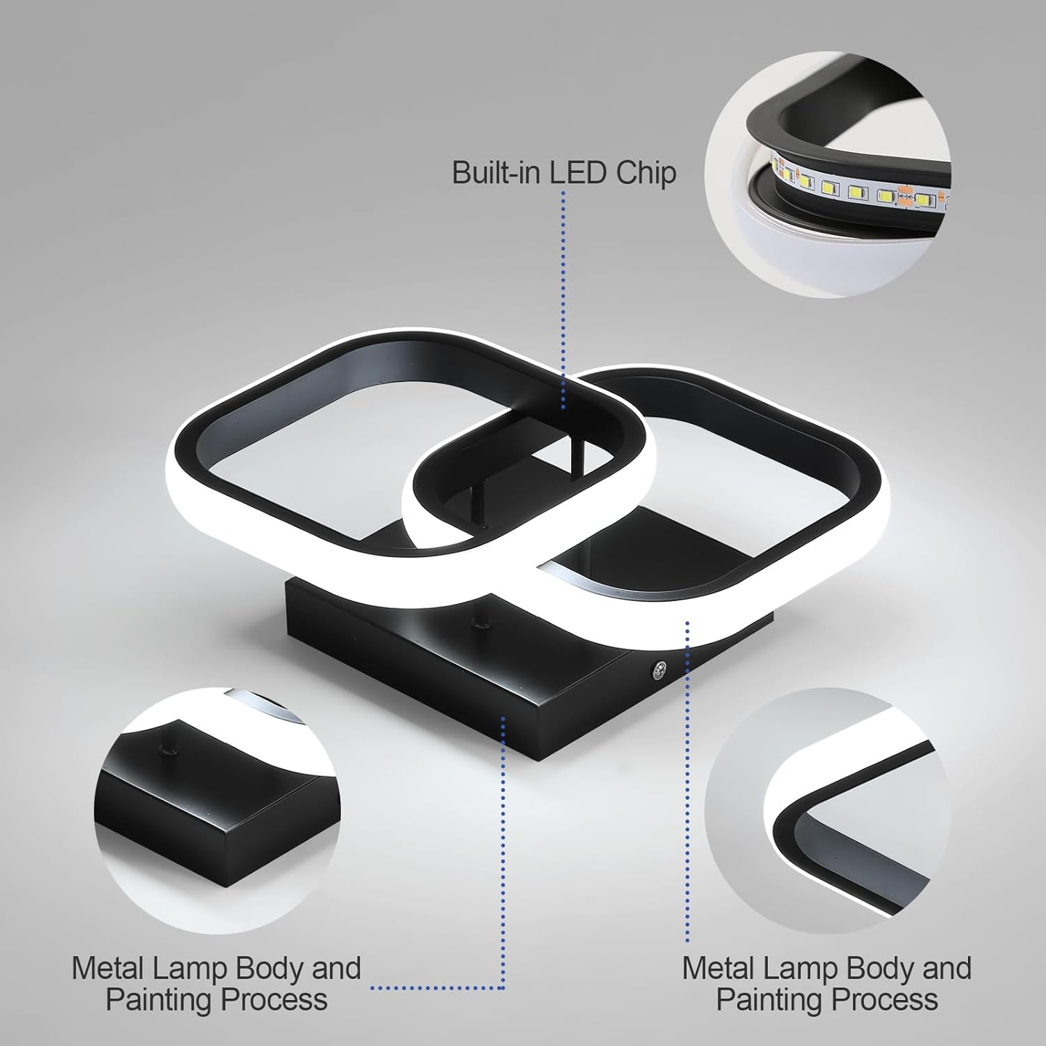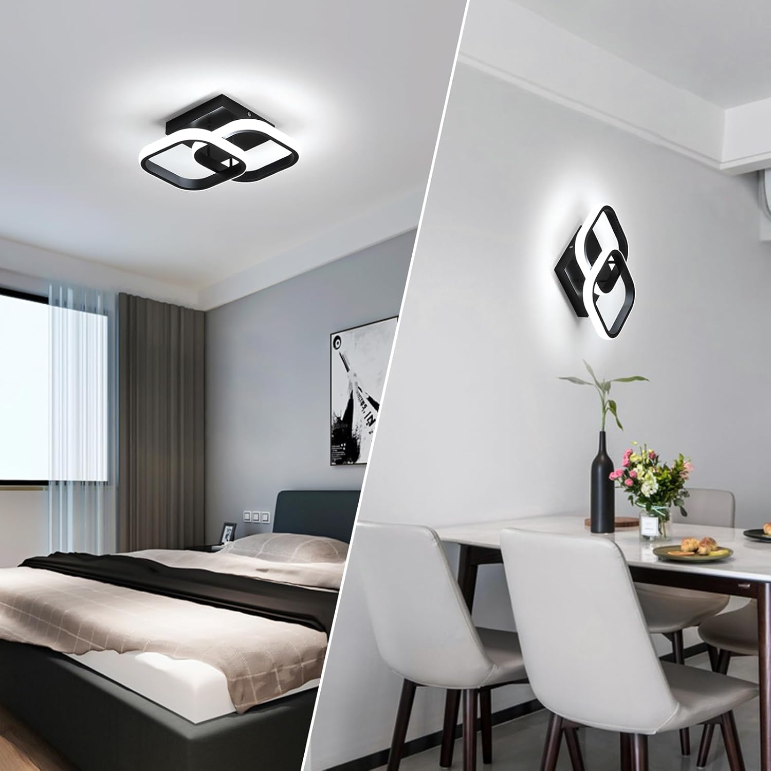 ??Kreatives Design?? LED-Deckenleuchten für den Innenraum im zeitgenössischen Stil, modische Schlichtheit, kreativ mit 2 quadratischen Formen. Die Deckenleuchte verfügt über komplettes Zubehör, wird mit Installationsanweisungen geliefert und ist einfach zu installieren