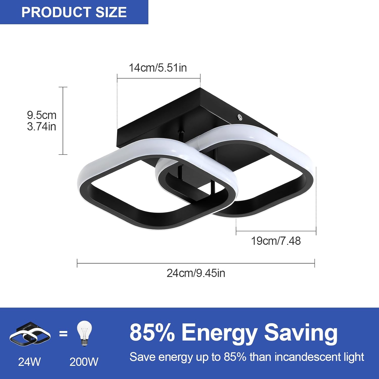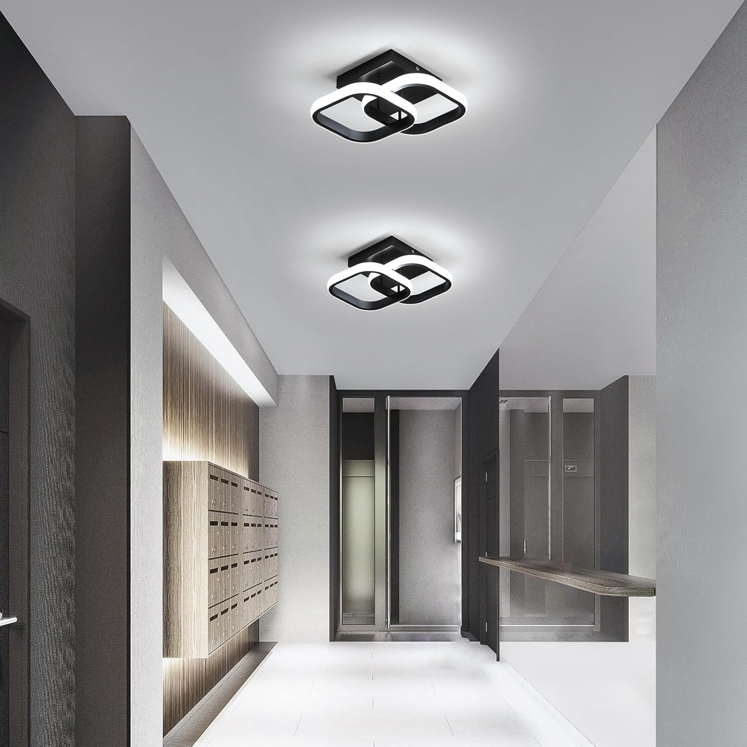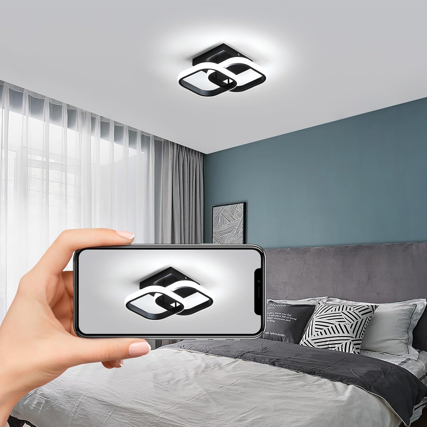 Comely 2 Packung LED Deckenleuchten Modern, 24W 2700LM Kleine quadratische LED Deckenleuchte, Innenbeleuchtung für 1r Schlafzimmer, Wohnzimmer, Gang, Weißes Licht 6500K, Negro, 24cm
