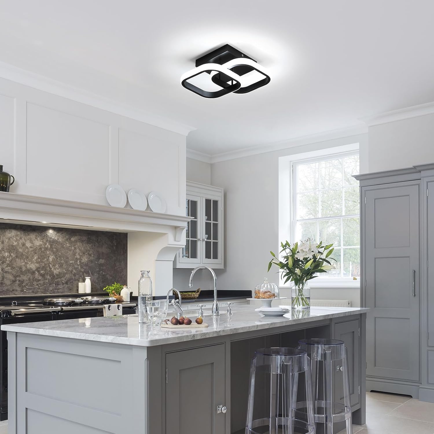 ??Energieeinsparung und Augenschutz??Die Deckenleuchte für den Innenbereich verfügt über eine integrierte LED-Chip-Lichtquelle, geringer Stromverbrauch, aber hohe Helligkeit, sie kann Ihnen helfen, etwa 85 % der Stromrechnungen zu sparen. Der Farbwiedergabeindex (CRI) beträgt mehr als 85Ra, was die wahre Farbe des Objekts gut wiedergibt, kein Flimmern verursacht und Ihre Augen schädigt