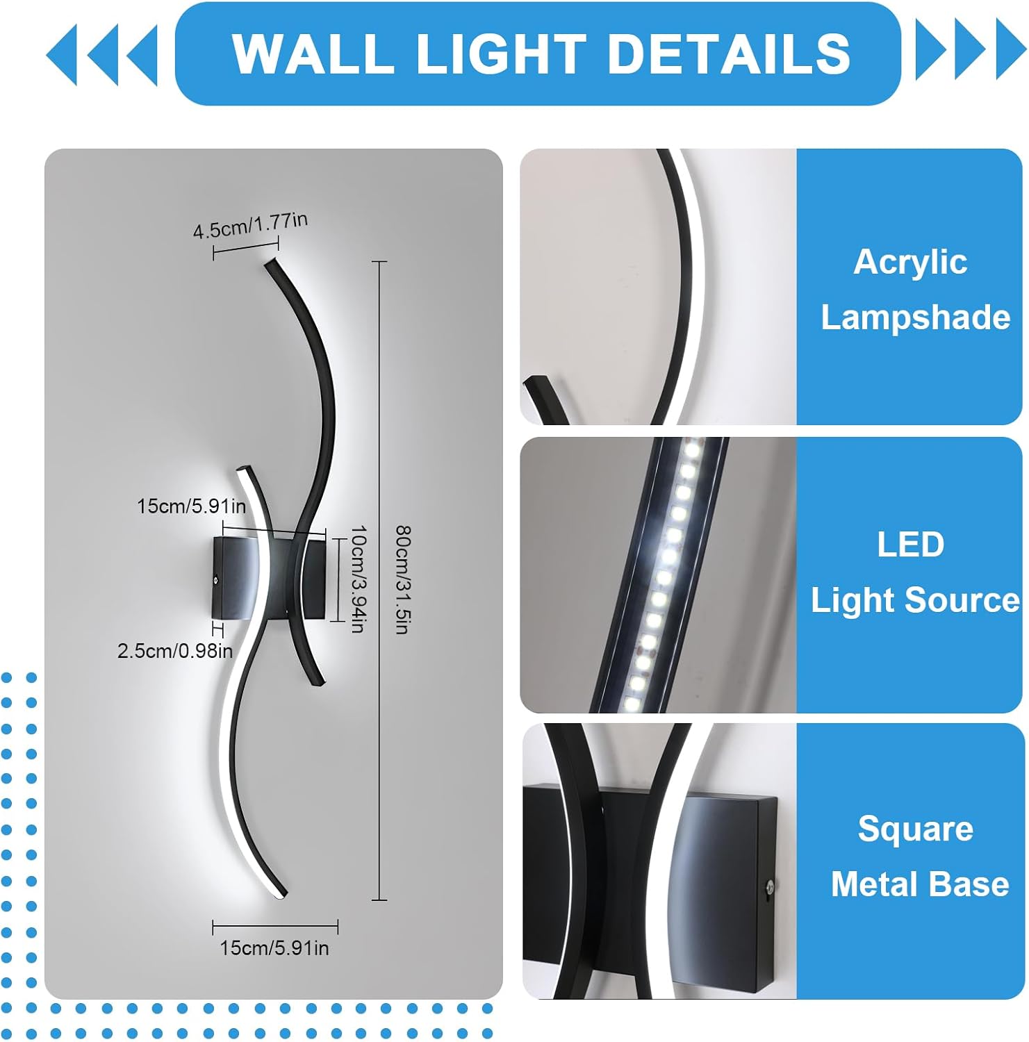 Versatile Use: With its simple and stylish design, this black wall light provides bright illumination that enhances the decor of any room. It is perfect for bedrooms, living rooms, dining rooms, kitchens, hallways, hotels, balconies, and all other indoor spaces to achieve an impressive visual effect.