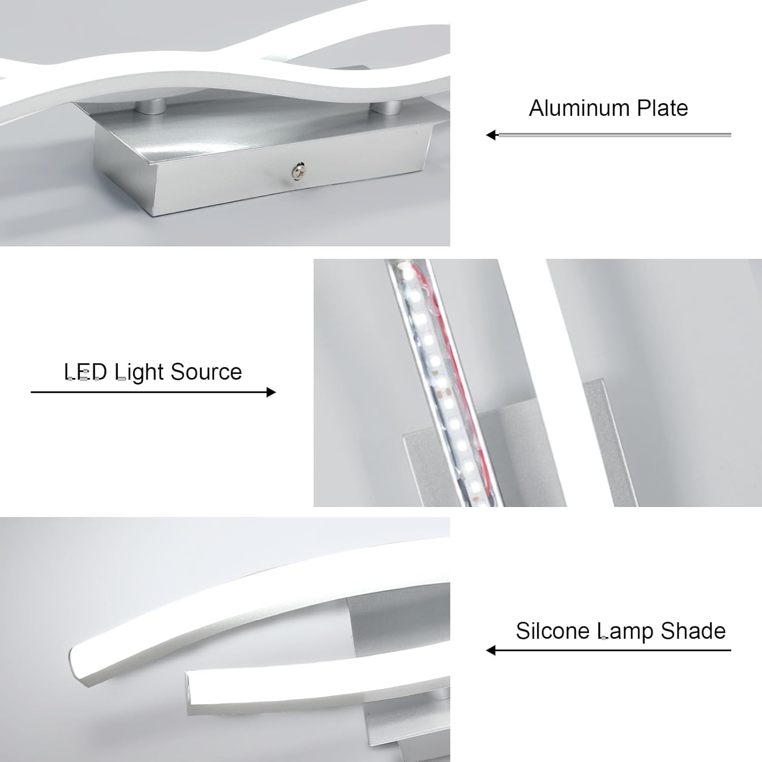 ??Aluminium und Silikon-Material??Das moderne LED-Wandleuchte-Körper ist aus Aluminium-Material, Anti-Korrosions- und Anti-Rost, und es nimmt einen Silikon-Lampenschirm, der eine bessere Lichtdurchlässigkeit als Acryl-Material hat
