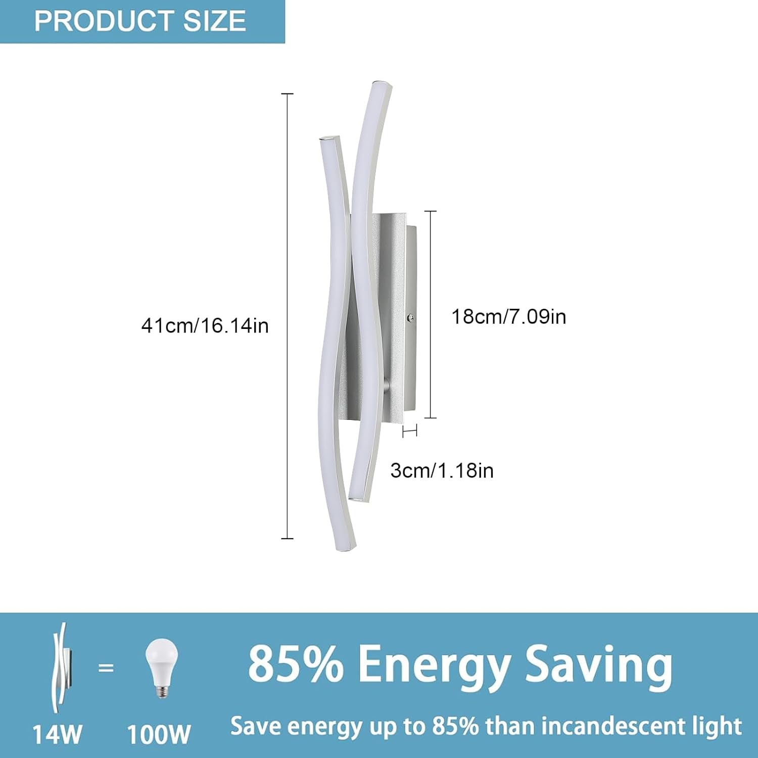 ??LED-Wandleuchte Spezifikationen??Leistung: 14W 1575LM, Farbtemperatur: Weißes Licht 6500K, K?rperfarbe: Silber, Menge: 2 St?¡ã1ck, LED-Wandleuchte Gr??e: 41x8x8cm/16.14?¨¦?3.15?¨¦?3.15 Zoll, Spannung: 110V-230V