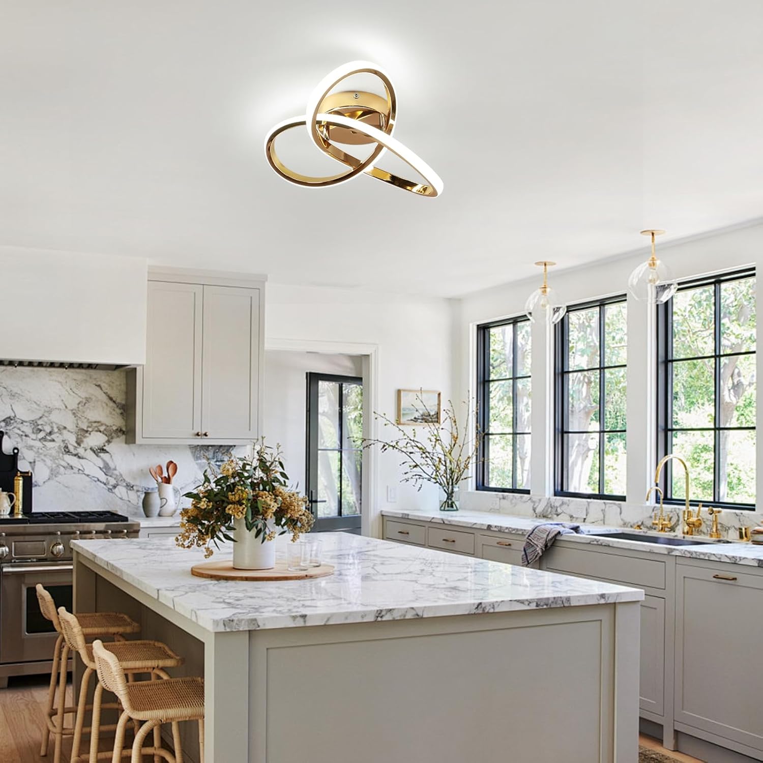 Applications: This gold LED ceiling light is elegant and modern in design. It can be perfectly combined with European, classical, modern, and other decorative styles to create a new decorative feel. Suitable for bedrooms, living rooms, kitchens, dining rooms, porches, hallways, and other places as a decorative lighting fixture.