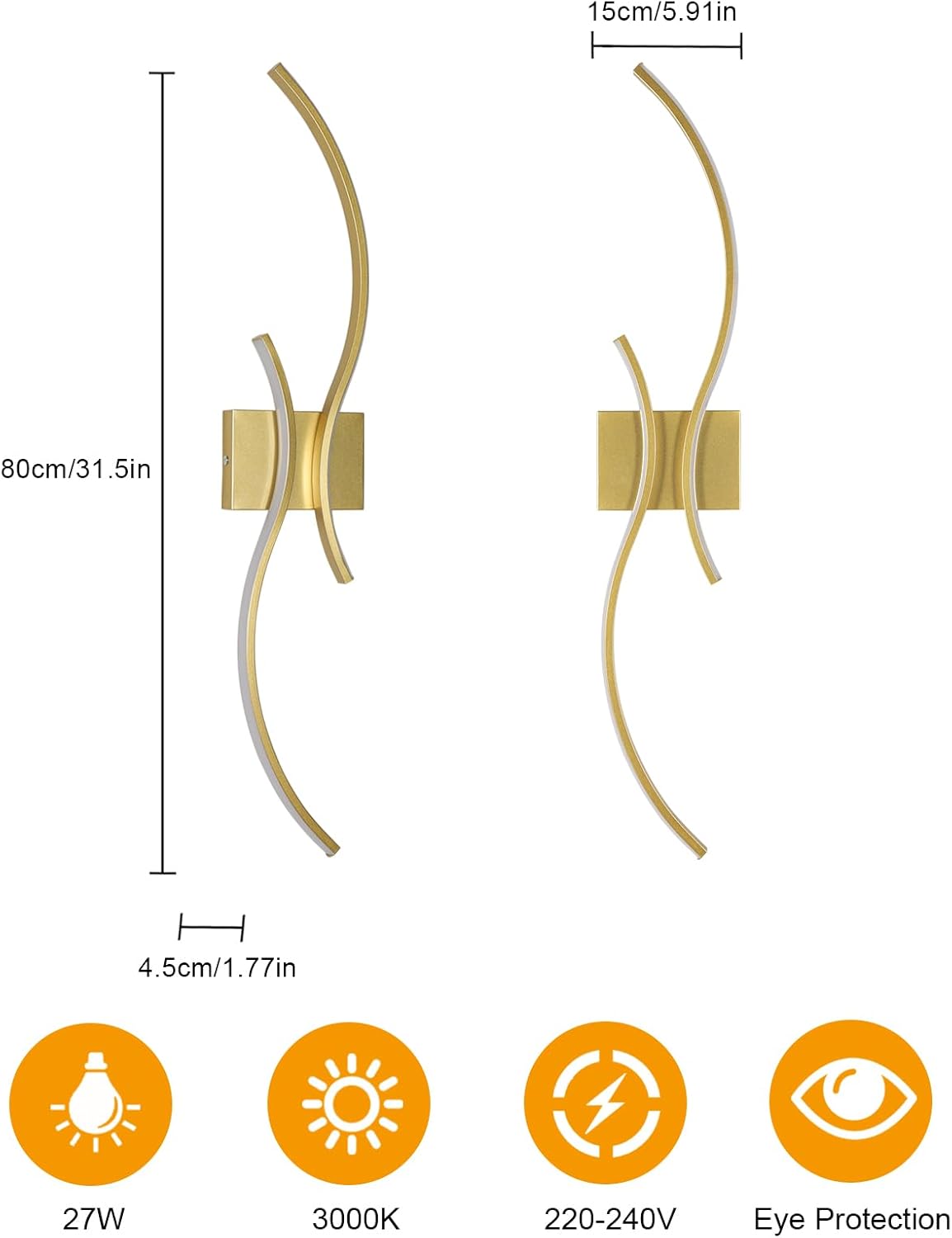 Applicable Scenarios: Dimensions: 80 * 15 * 4.5 cm. This elegantly designed linear wall light complements various decor styles and is suitable for bedrooms, living rooms, hallways, staircases, entry halls, hotels, meeting rooms, and bars.
