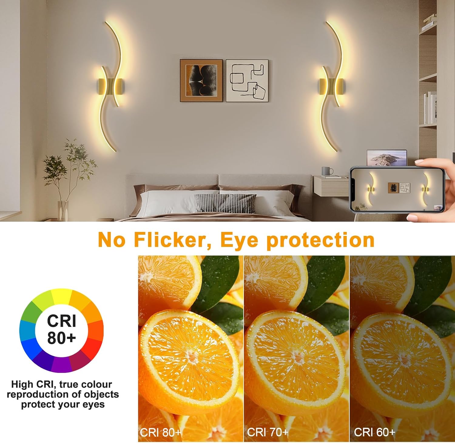 Dimmable: This white wall lamp can be continuously dimmed from 10% to 100% brightness via remote control. The color temperature can be adjusted between 3000K (warm white), 4500K (natural white), and 6500K (cool white) to meet different lighting requirements.