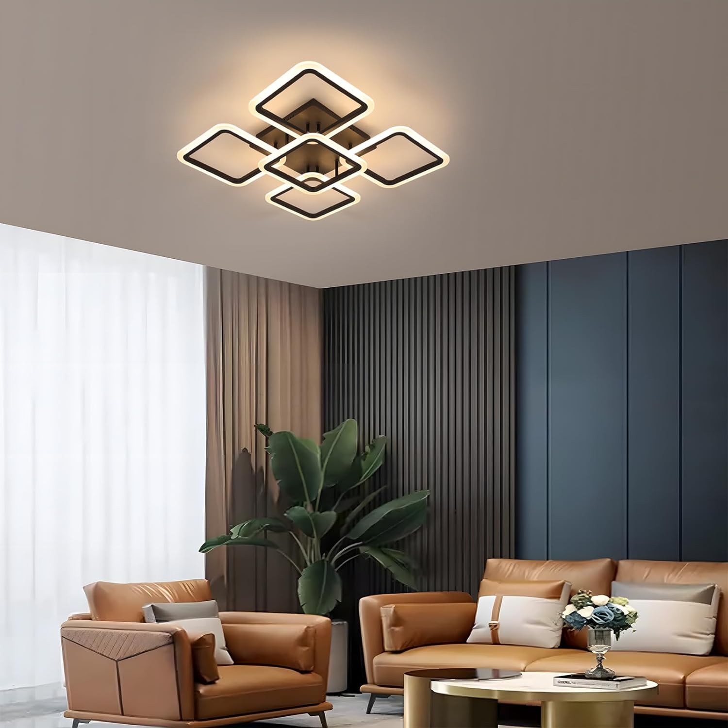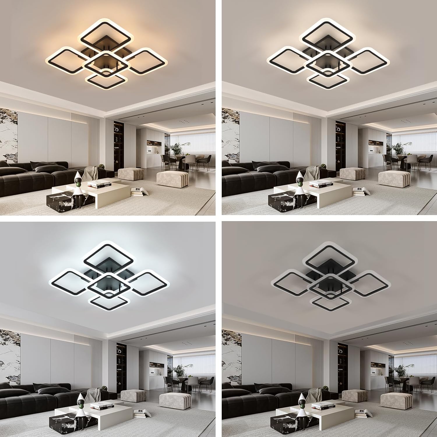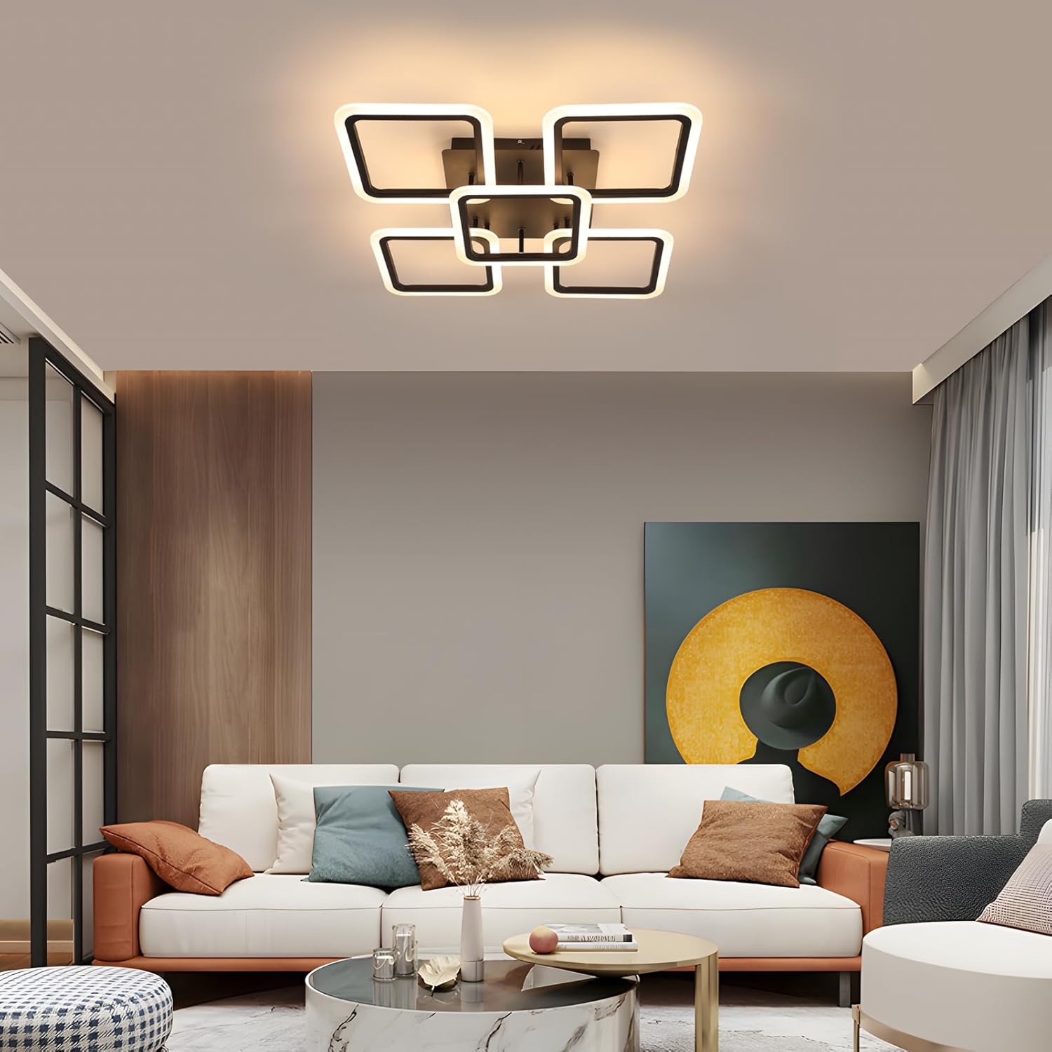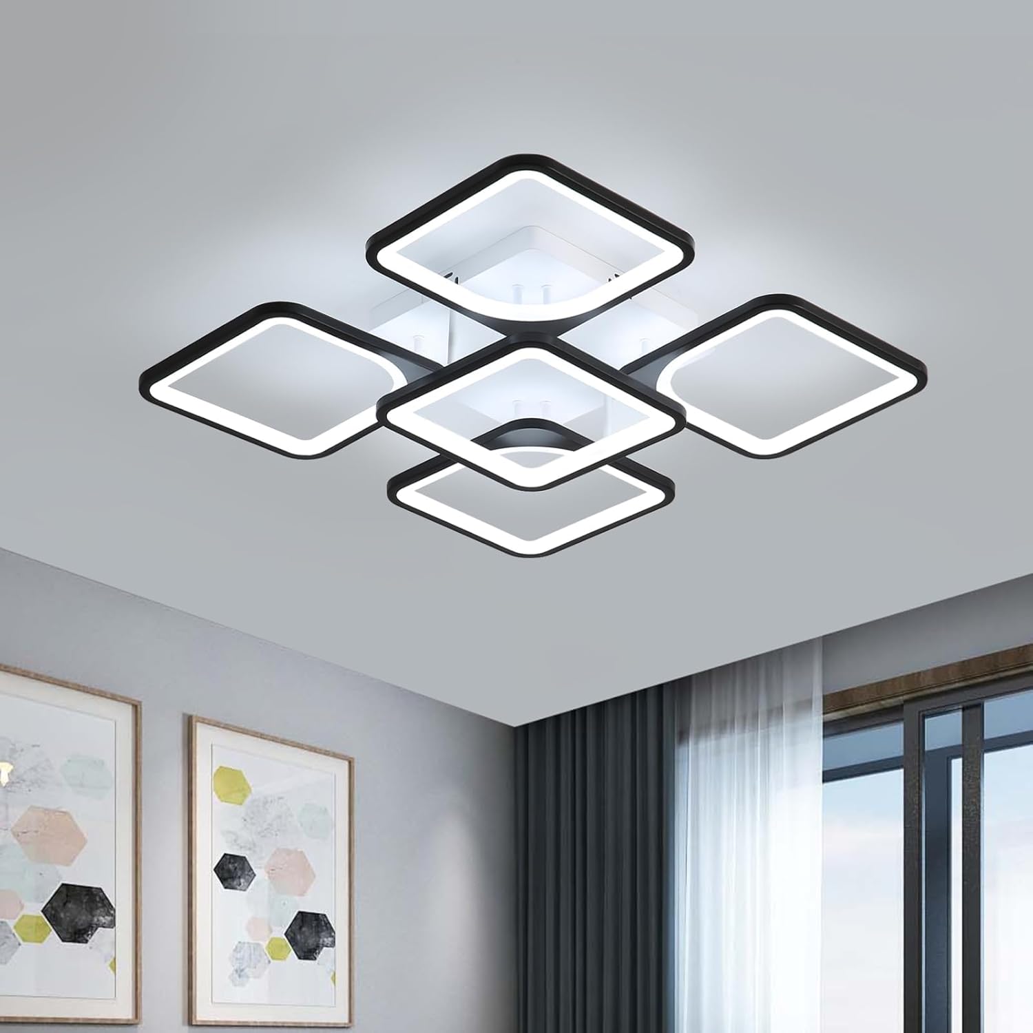 Comely 57W LED Ceiling Light Dimmable, 6400LM, Black 5 Square Ceiling Lamp Modern with Remote Control 3000K-6500K, LED Ceiling Light for Living Room