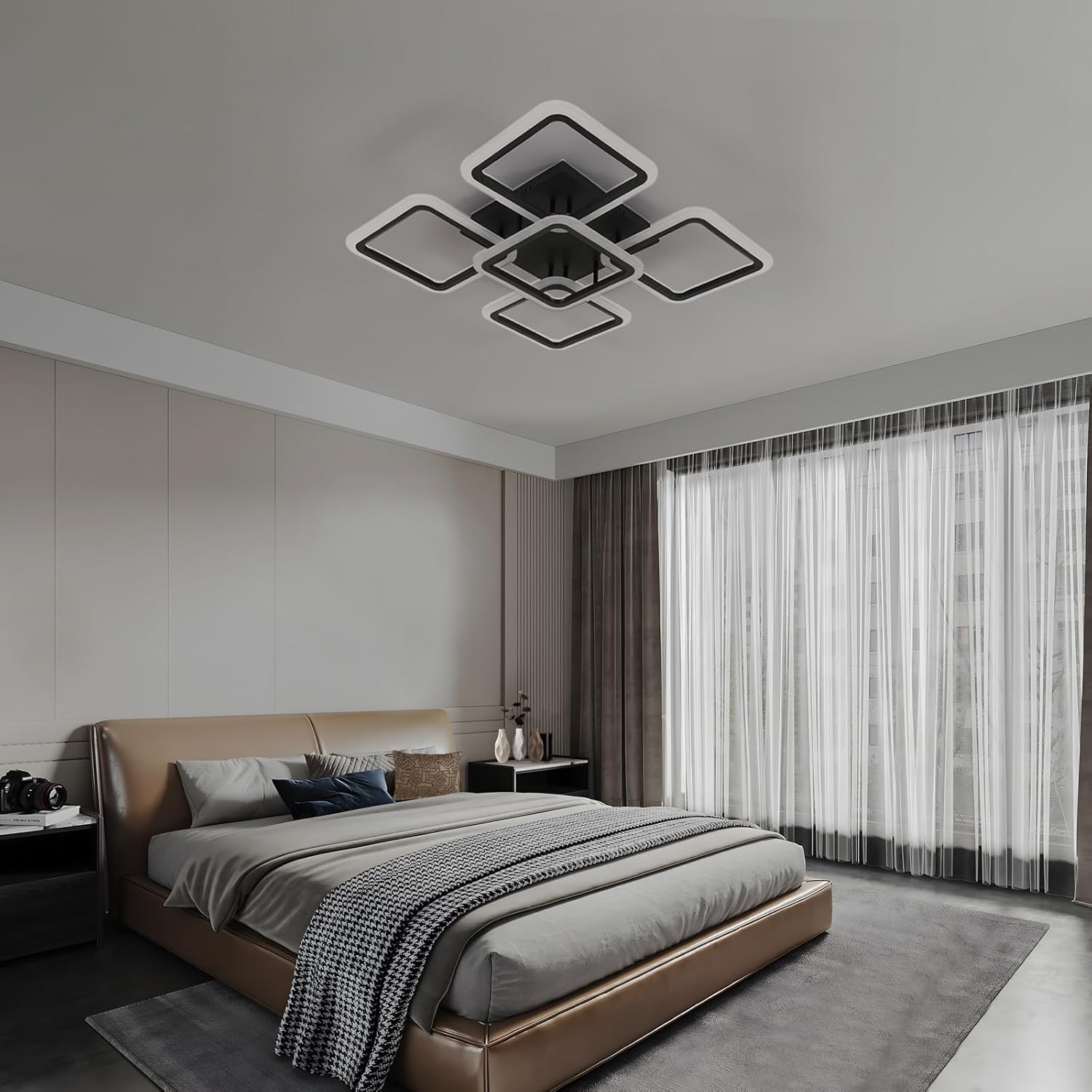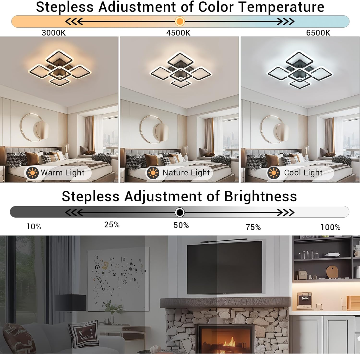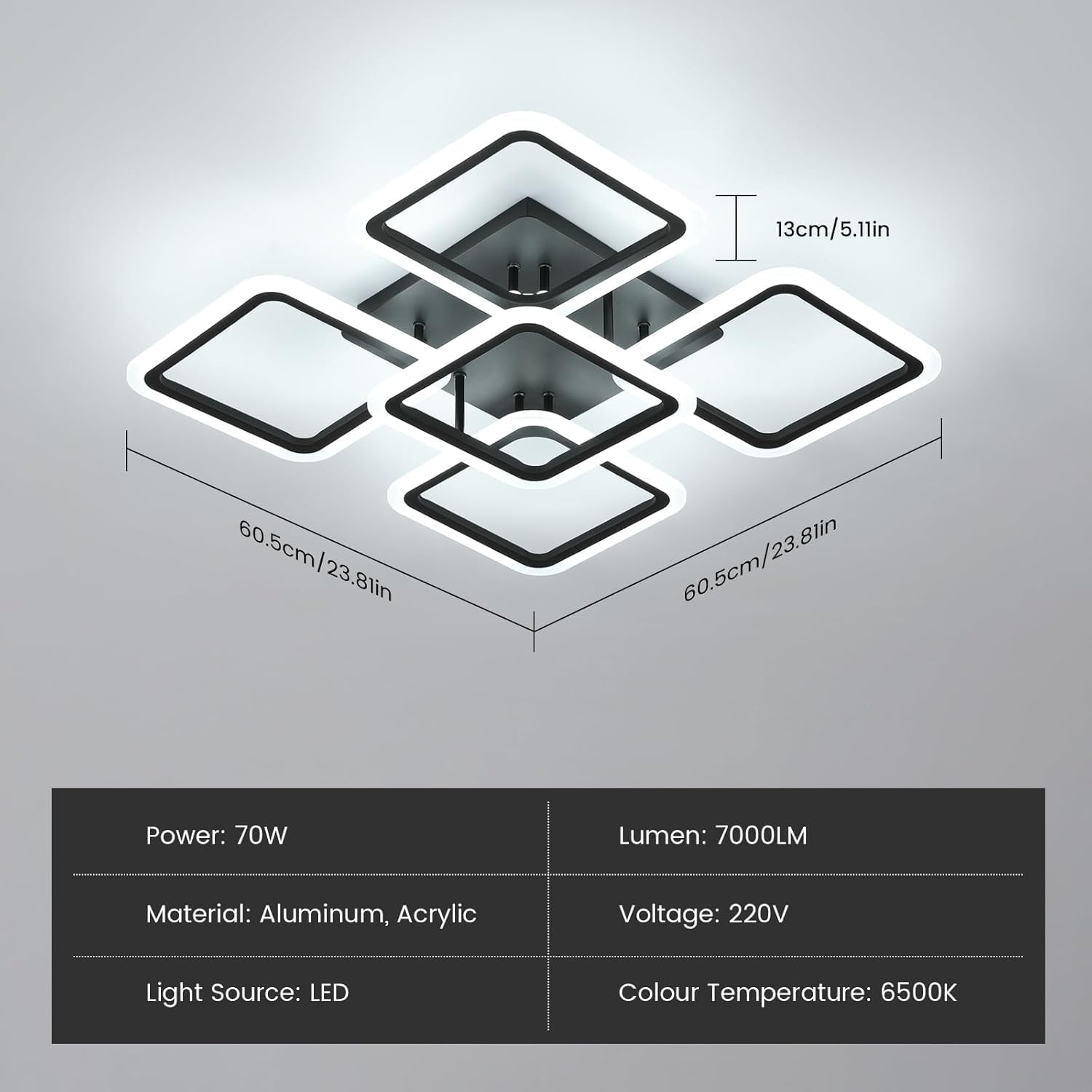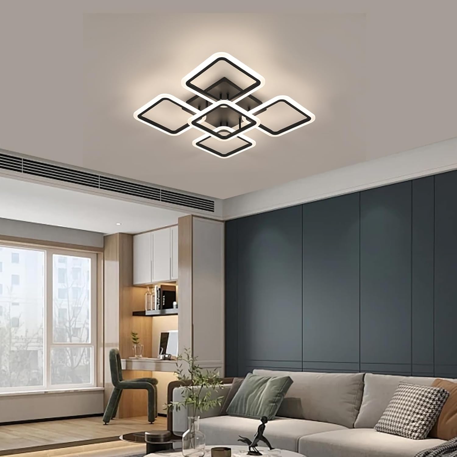 Comely 57W LED Ceiling Light Dimmable, 6400LM, Black 5 Square Ceiling Lamp Modern with Remote Control 3000K-6500K, LED Ceiling Light for Living Room