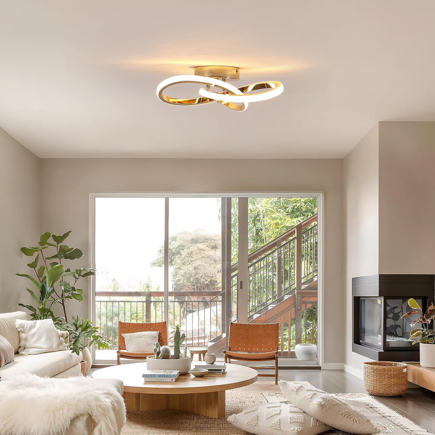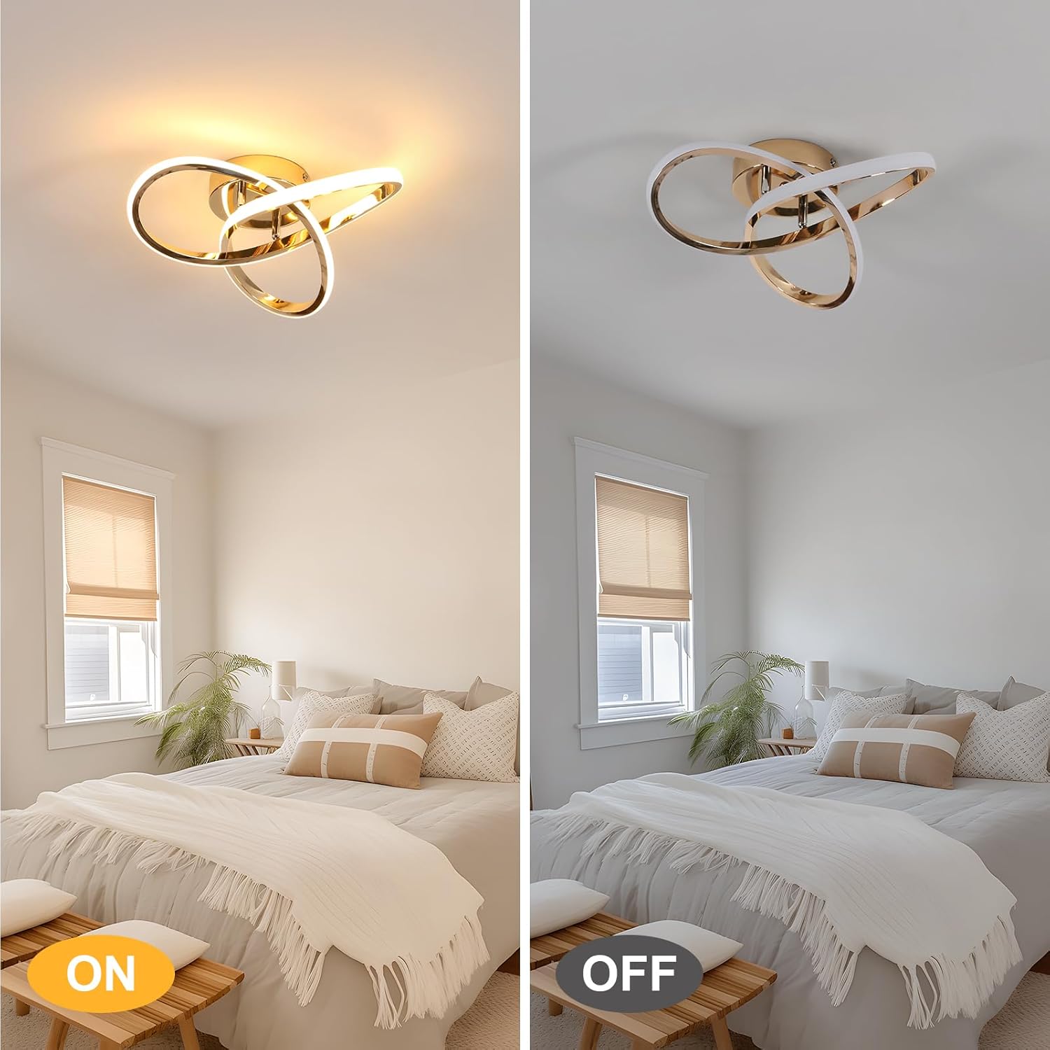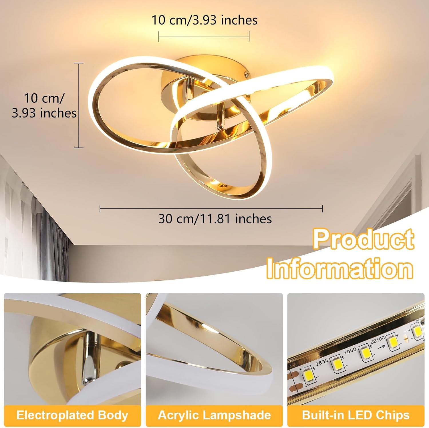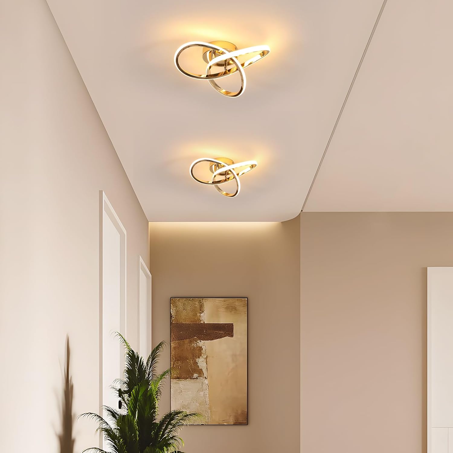This gold ceiling light is beautifully designed, bringing a sense of modernity and artistry into the space. Perfect for living rooms, hallways, corridors, bedrooms, kitchens, staircases, offices, balconies, hotels, cafes, and various other indoor spaces.
