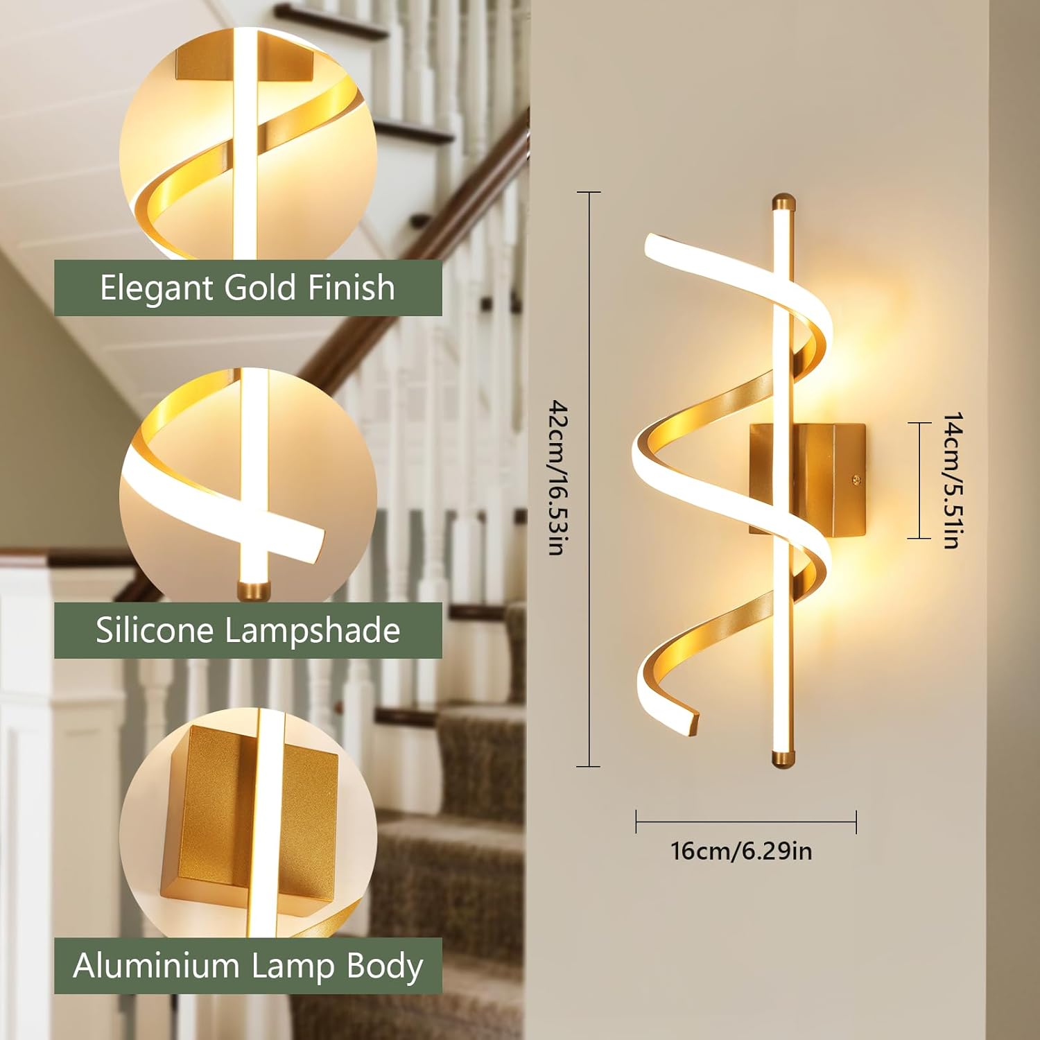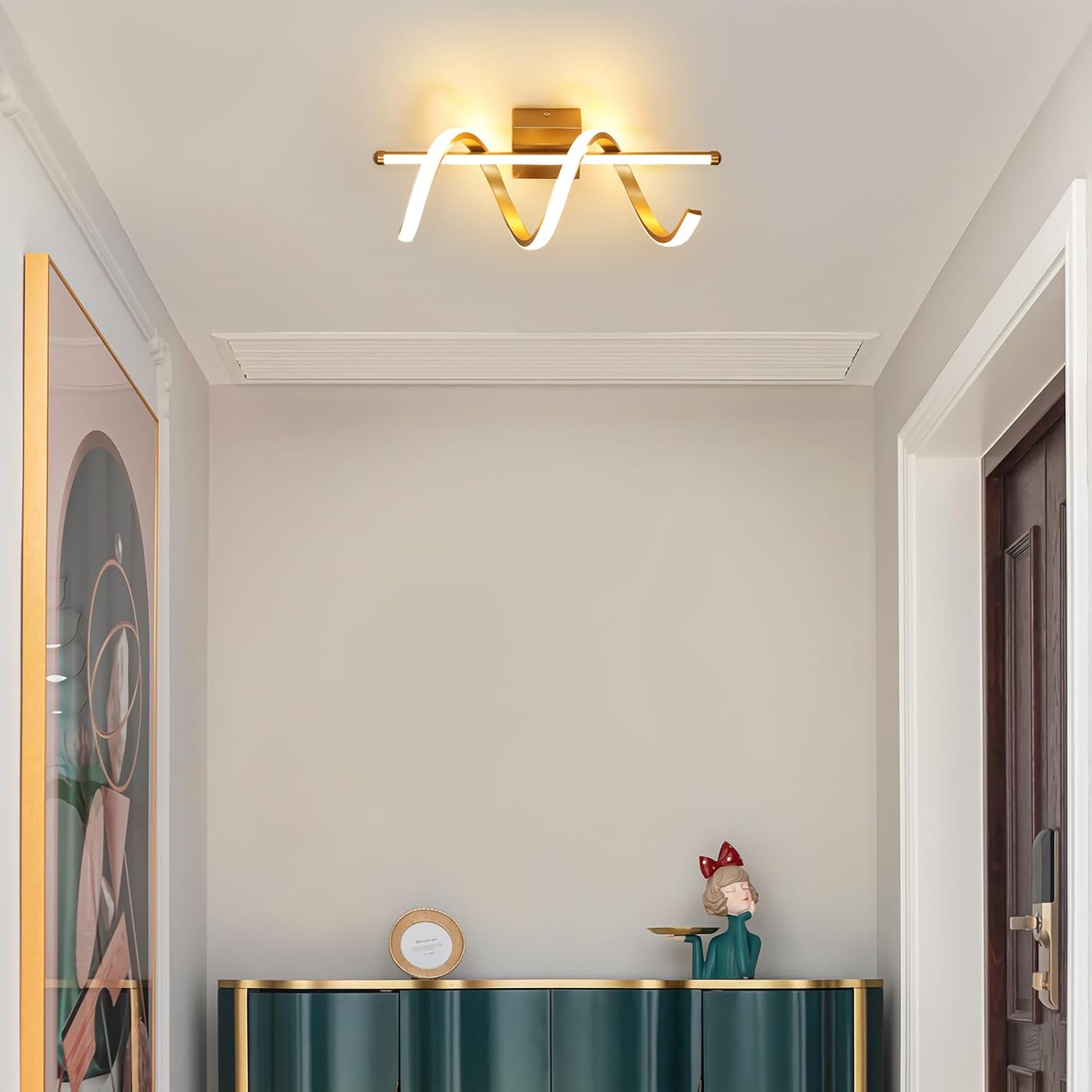 Elegant Design: Our LED ceiling light combines a creative, fashionable spiral design with a luxurious gold finish, emitting a warm, soft light that adds an elegant touch to any room. This makes it the ideal choice for both modern and traditional interior styles.