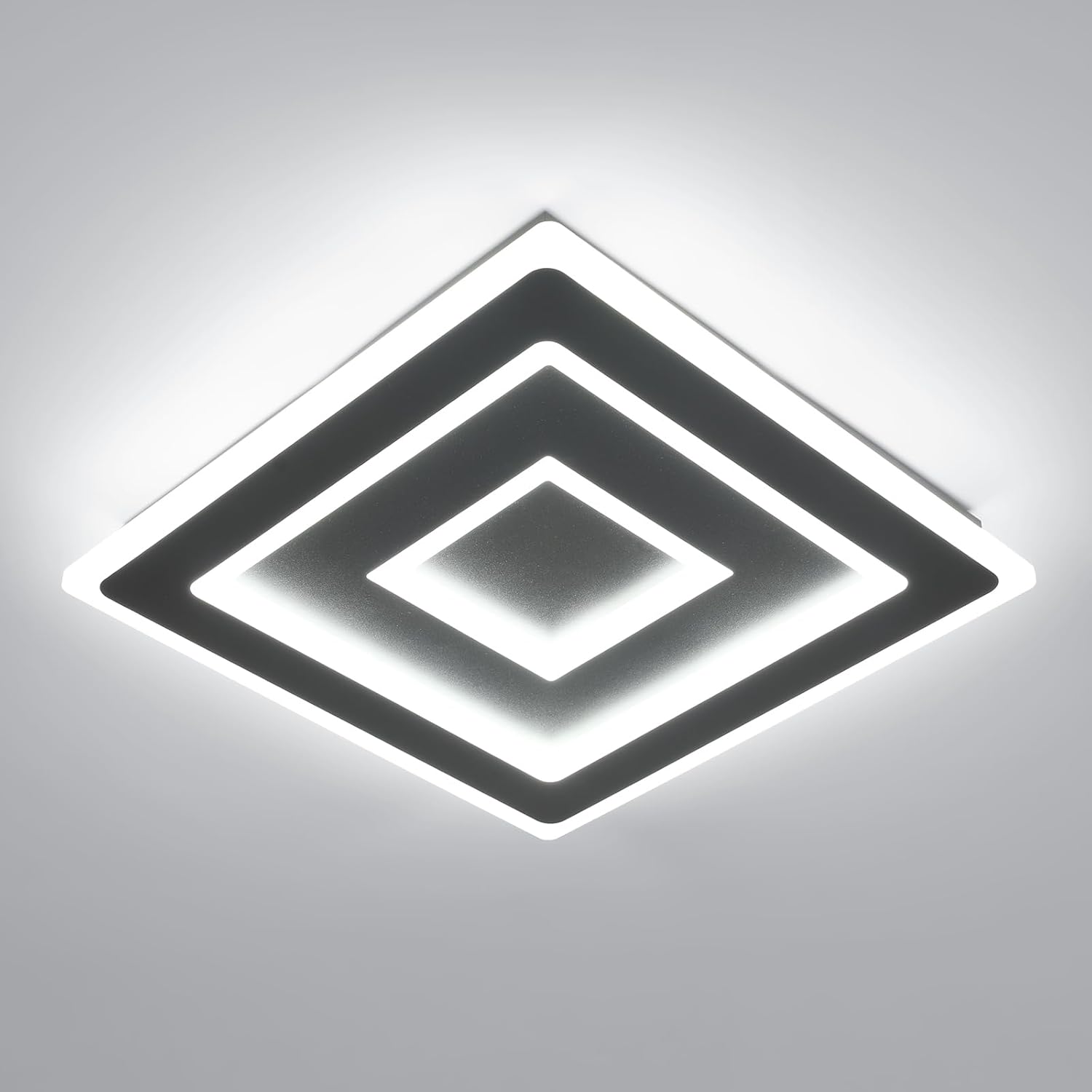 Comely LED Deckenleuchte Quadrat, 52W 5850LM Schwarz Moderne Deckenlampe Quadratisch LED Acryl LED Deckenbeleuchtung, LED Lampen f¨¹r Schlafzimmer, Wohnzimmer, Wei?es Licht 6500K, 40cm