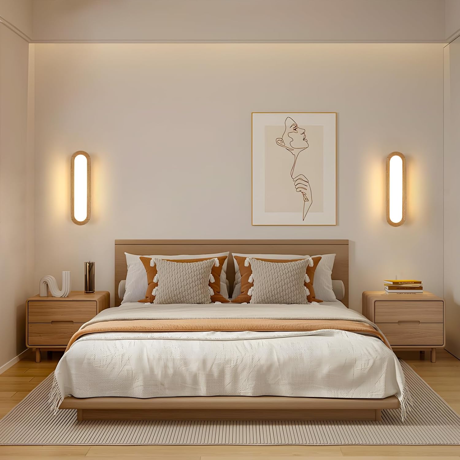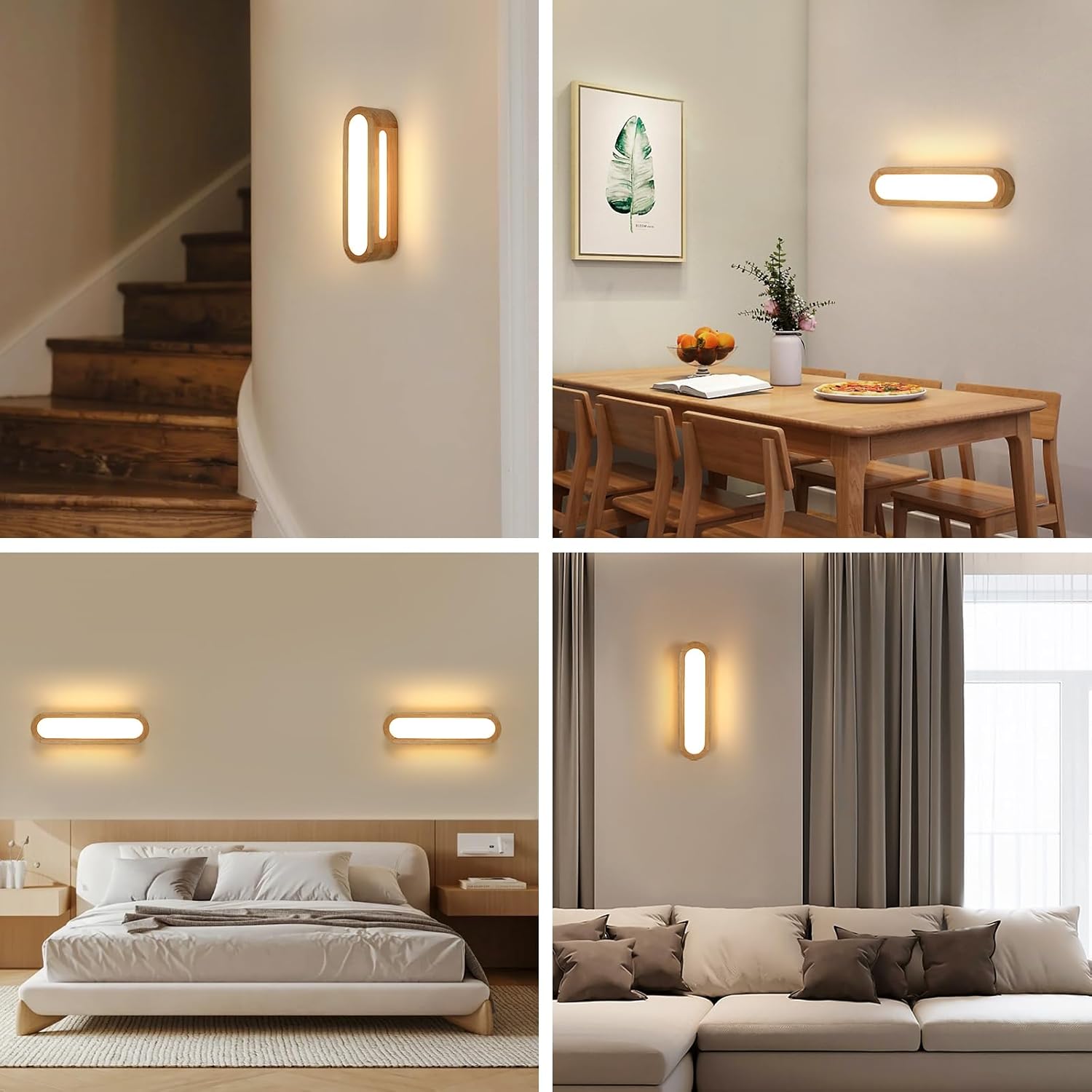 Modern Design: This LED wall light seamlessly combines contemporary minimalist lines with natural solid wood. Its natural wood finish complements various decor styles. It is more than just lighting; it is a tasteful piece of art that adds an elegant touch to any home.