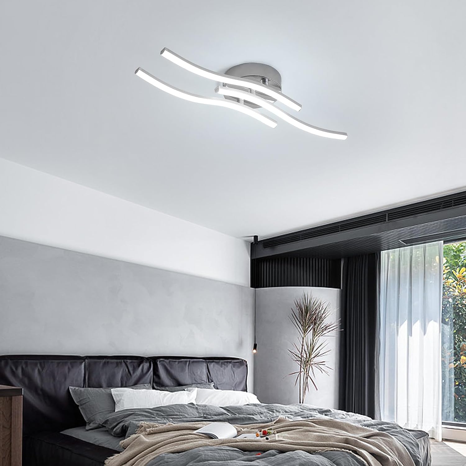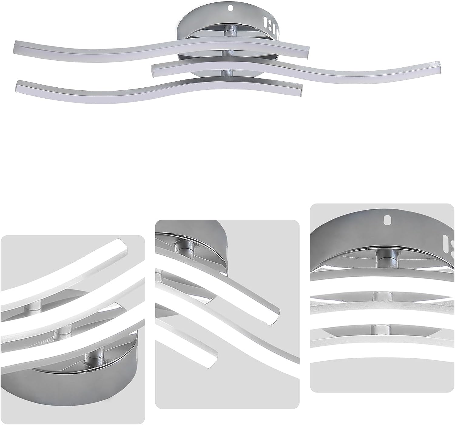 Plafoniera moderna e accattivante, lampada da soffitto con design ondulato da 18 W e 2000 lm, luce bianca fredda 6500 K, plafoniera a LED color argento per soggiorno, camera da letto, sala da pranzo