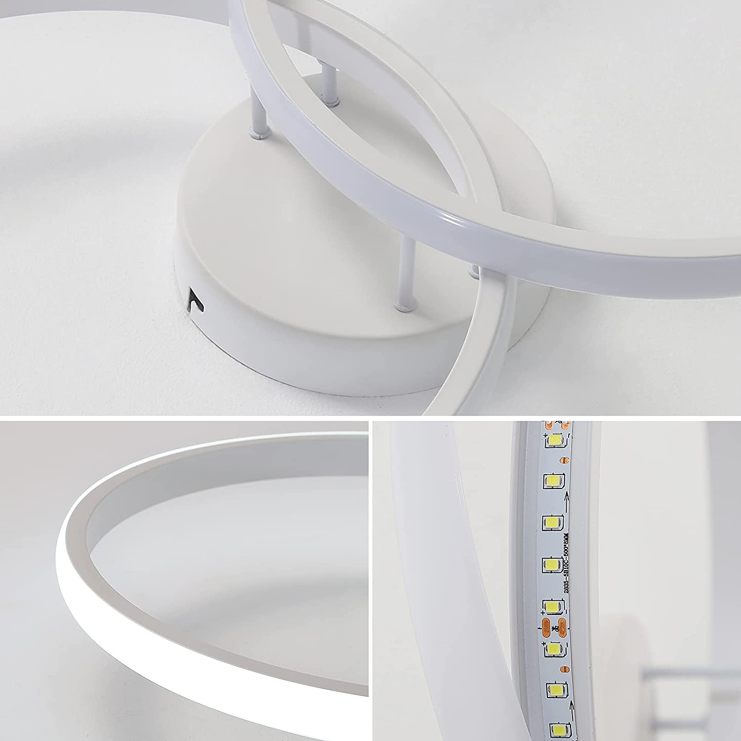 (Geometric Design) This LED ceiling light features two interwoven geometric rings, creating a simple and elegantly shaped ceiling light. Elegant white color, versatile color matching. The soft light and round lamp body fill your bedroom with fashionable colors and a cozy atmosphere.