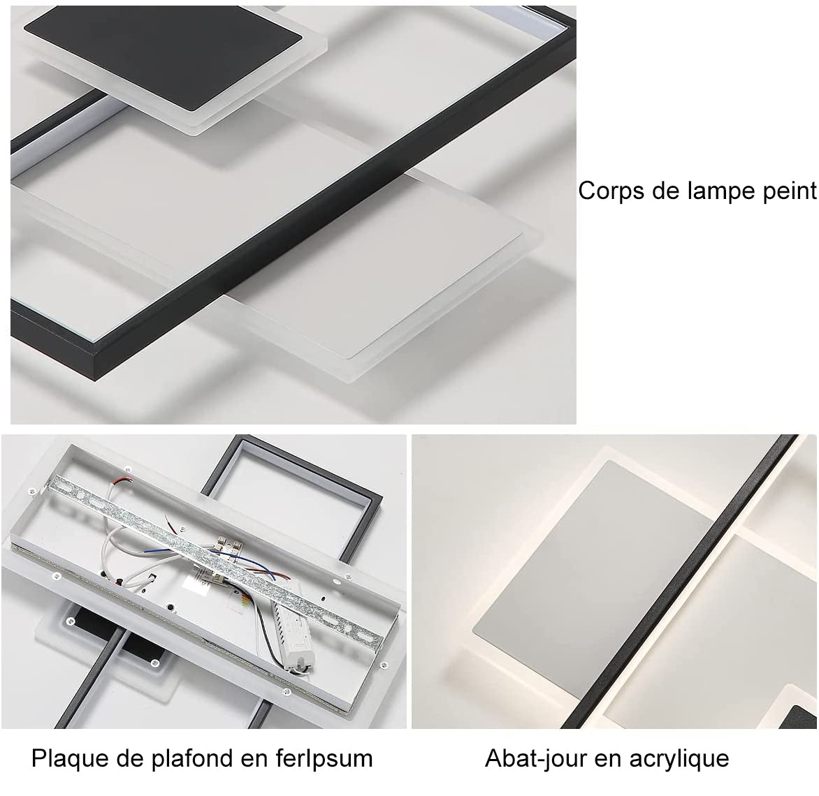 (Modern Rectangular Design) -Stylish LED ceiling light in black and white with a 50cm length for a contemporary living ambiance